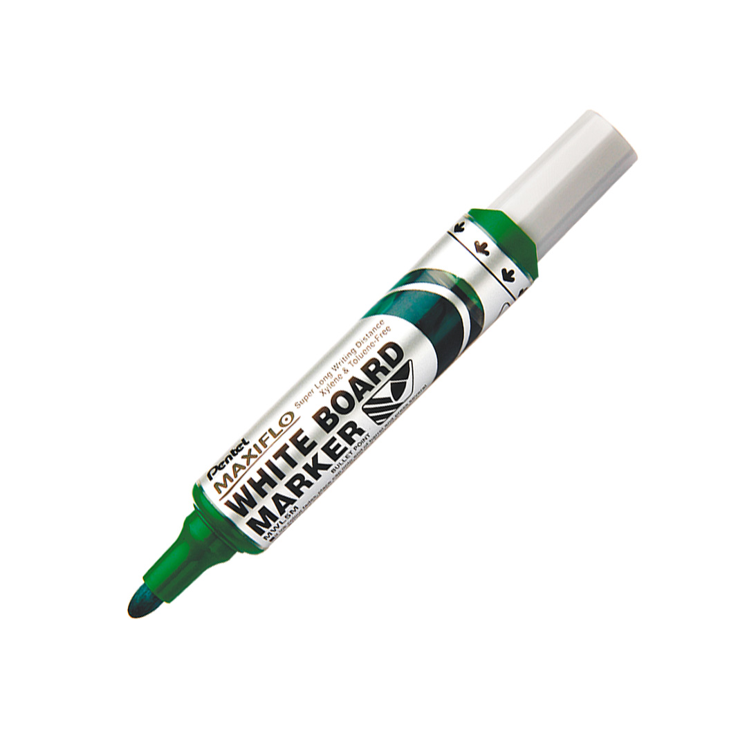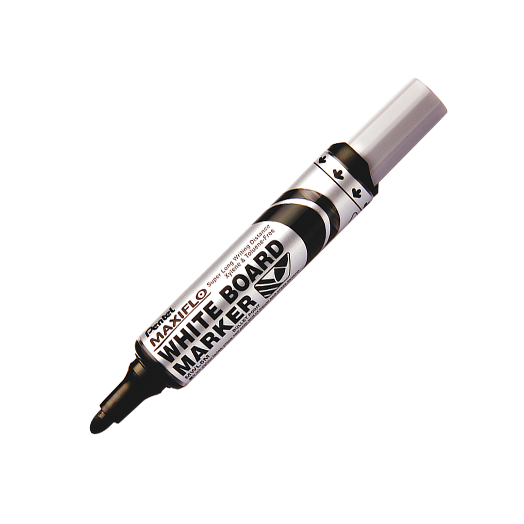 Marcador para quadros brancos, com ponta redonda, tinta líquida e sistema especial de pressão, que permite com que Maxiflo dure 3 vezes mais que os marcadores similares.